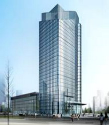 浙江海宁经编产业园区促进中心大楼集会议、产品展示、商务、办公为一体,海宁促进中心大楼工程位于海宁经编园区内,北侧丰收路,东临南北大道。主体为框架核心筒结构,地下一层,地上裙房五层、主楼二十七层,用地面积27245平方米,总建筑面积为56649M2。公司承接通风空调工程。2011年度荣获浙江省优秀安装质量奖、钱江杯。