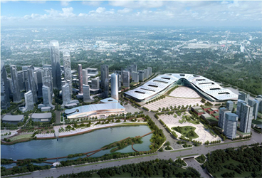 中国西部国际博览城(一期),位于成都市天府新区秦皇寺中央商务区,建筑面积57万平方米,地下室结构为混凝土框架,地上各展厅屋面采用钢桁架加网架。