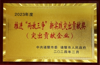 荣誉 |集团公司荣获2023年度诸暨市推进“两放三争”新实践突出贡献奖(突出贡献企业)